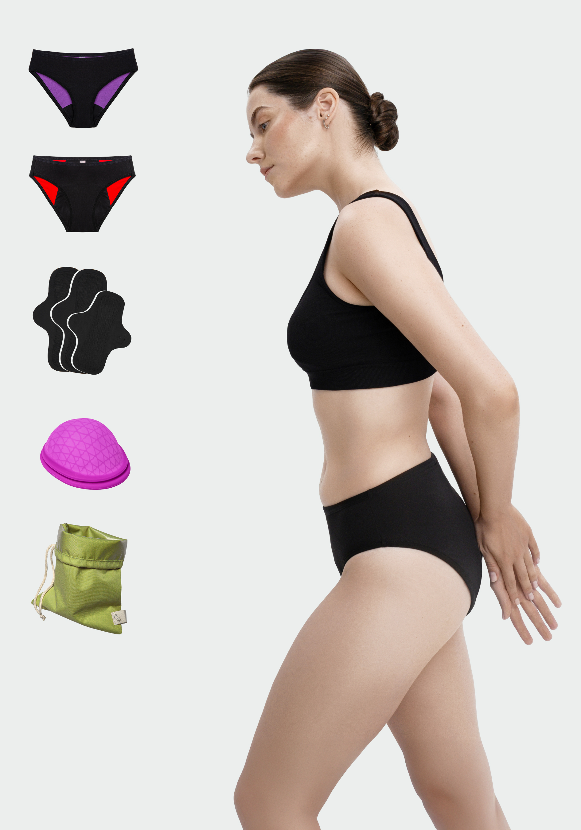 В наборе "Все и сразу" собраны все многоразовые средства, которые помогают чувствовать себя спокойно и уверенно в самые разные дни цикла. Он подойдёт тем, кто хочет познакомиться с разными форматами защиты и подобрать себе полноценный комплект «на каждый случай». А еще это практичный и заботливый вариант для подарка.